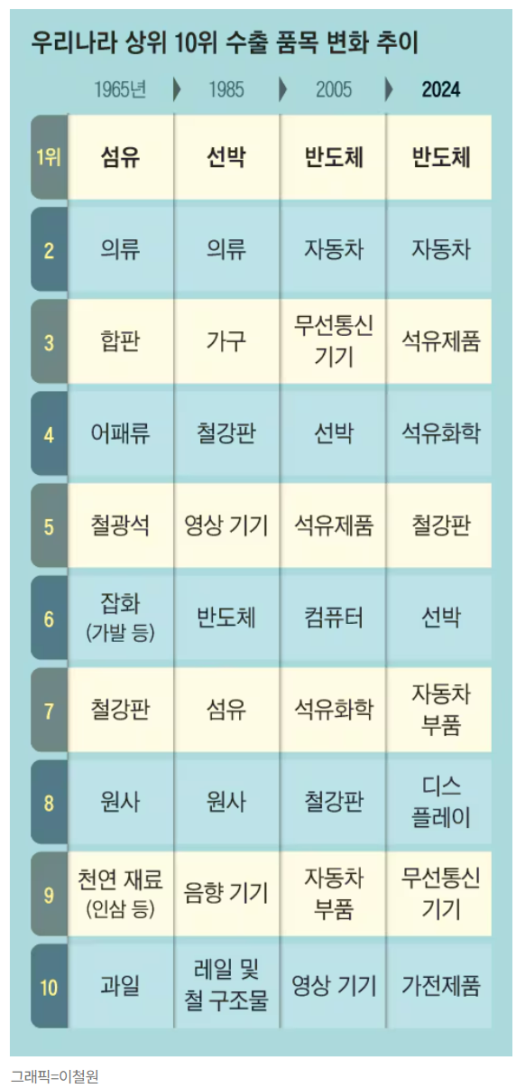 한국은 글로벌 시장에서 새로운 수요를 창출할 수 있는 혁신 제품 개발에 소극적이었습니다. 이는 한국 경제가 특정 품목에 의존하게 만드는 결과를 초래했으며, 트럼프 행정부의 보호무역주의와 같은 외부 충격에 취약한 구조를 형성했습니다.